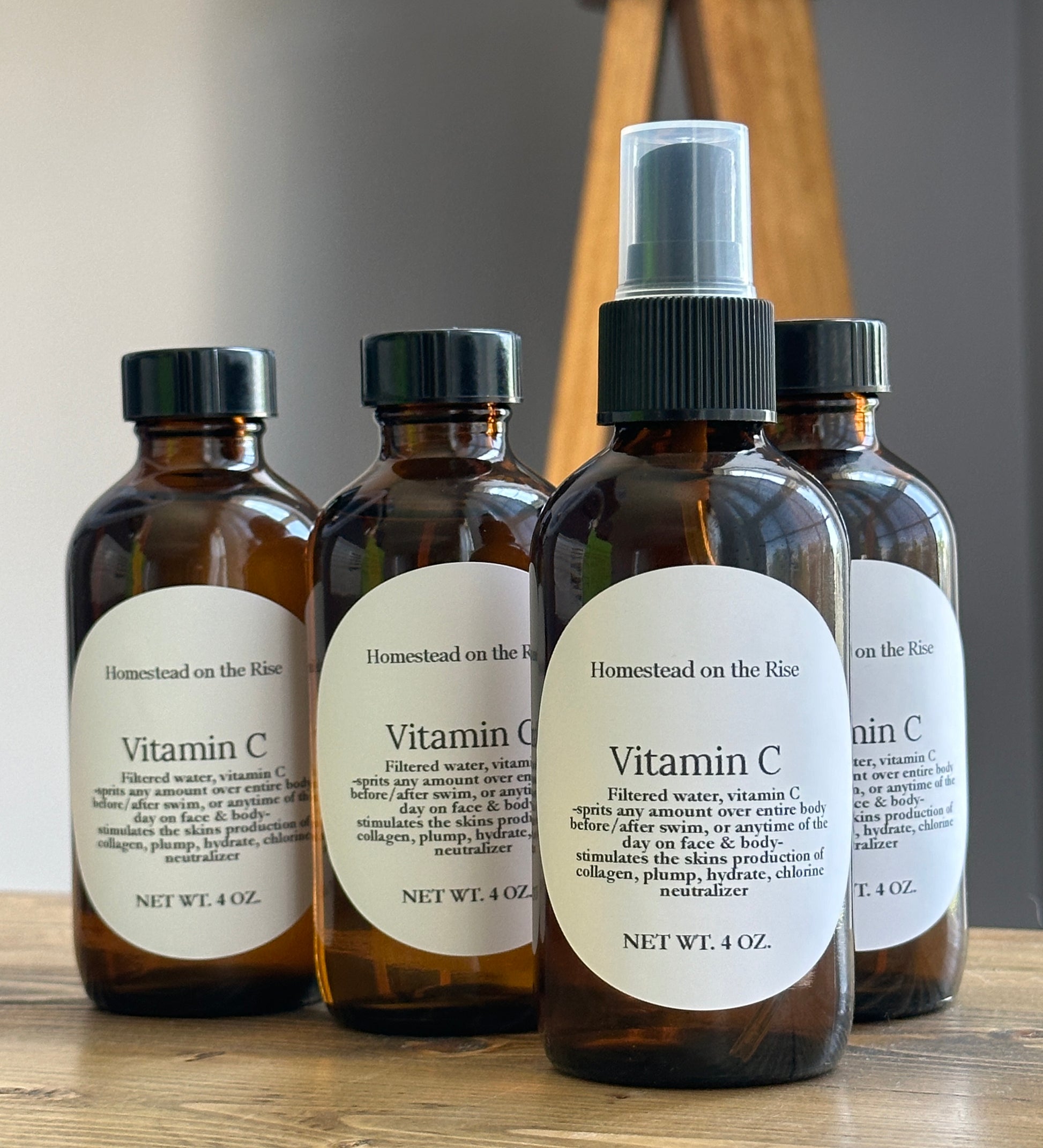 our vitamin C spray not only helps stimulate the skin’s production of collagen- it also plumps, hydrates and effectively neutralized chlorine. Great for after swim / shower