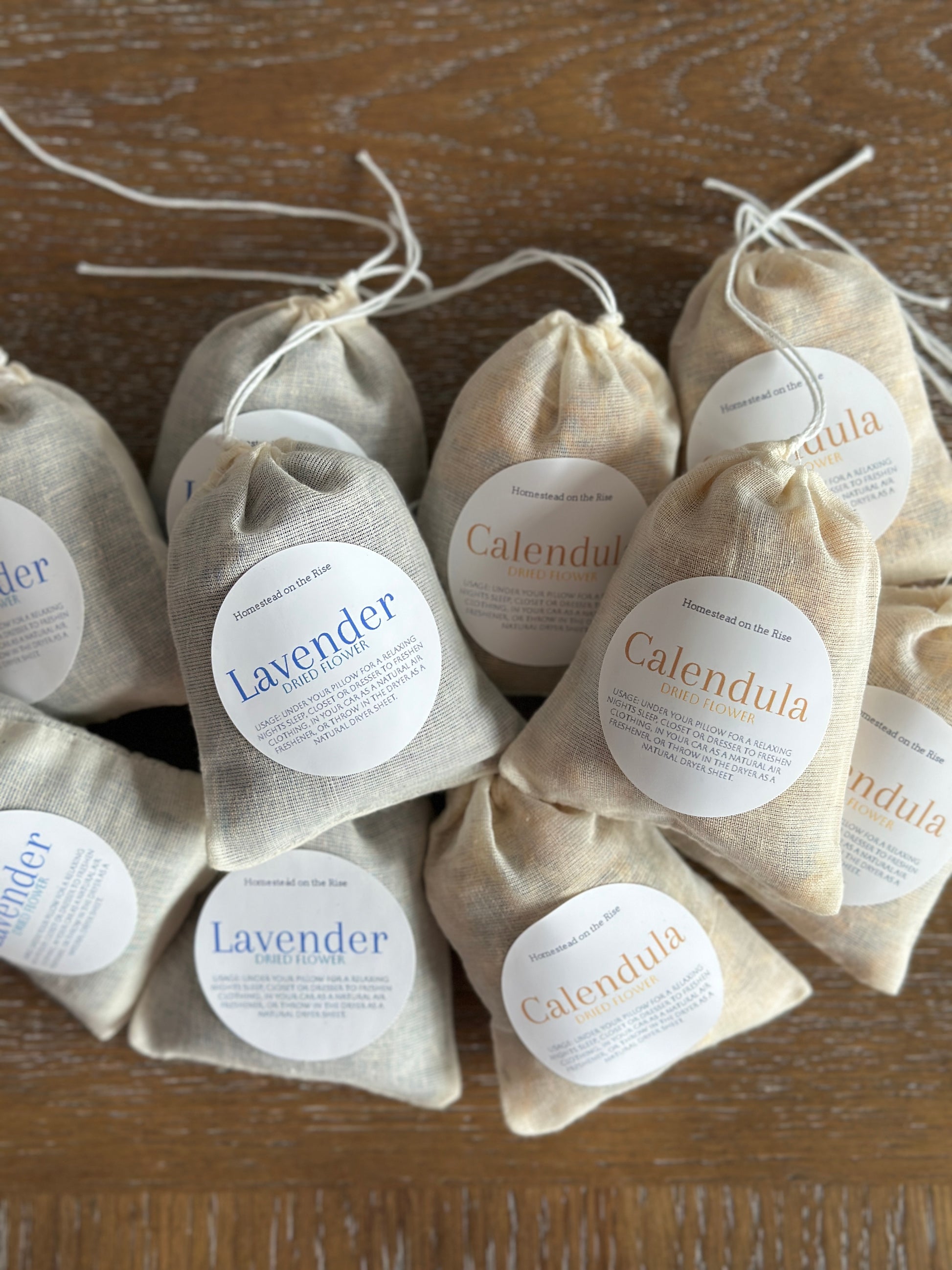 Our dried flower sachets are made with 100% organic dried flower. (Enclosed in a 100% cotton sachet)