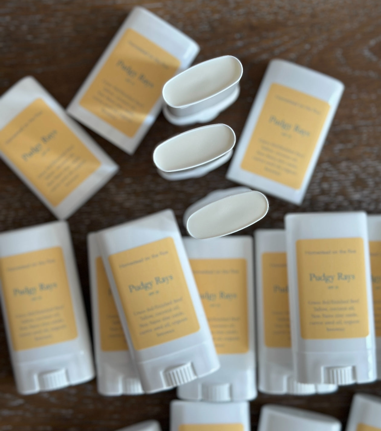 ingredients: grassfed/finished beef tallow, non nano zinc, carrot seed oil, pure beeswax.