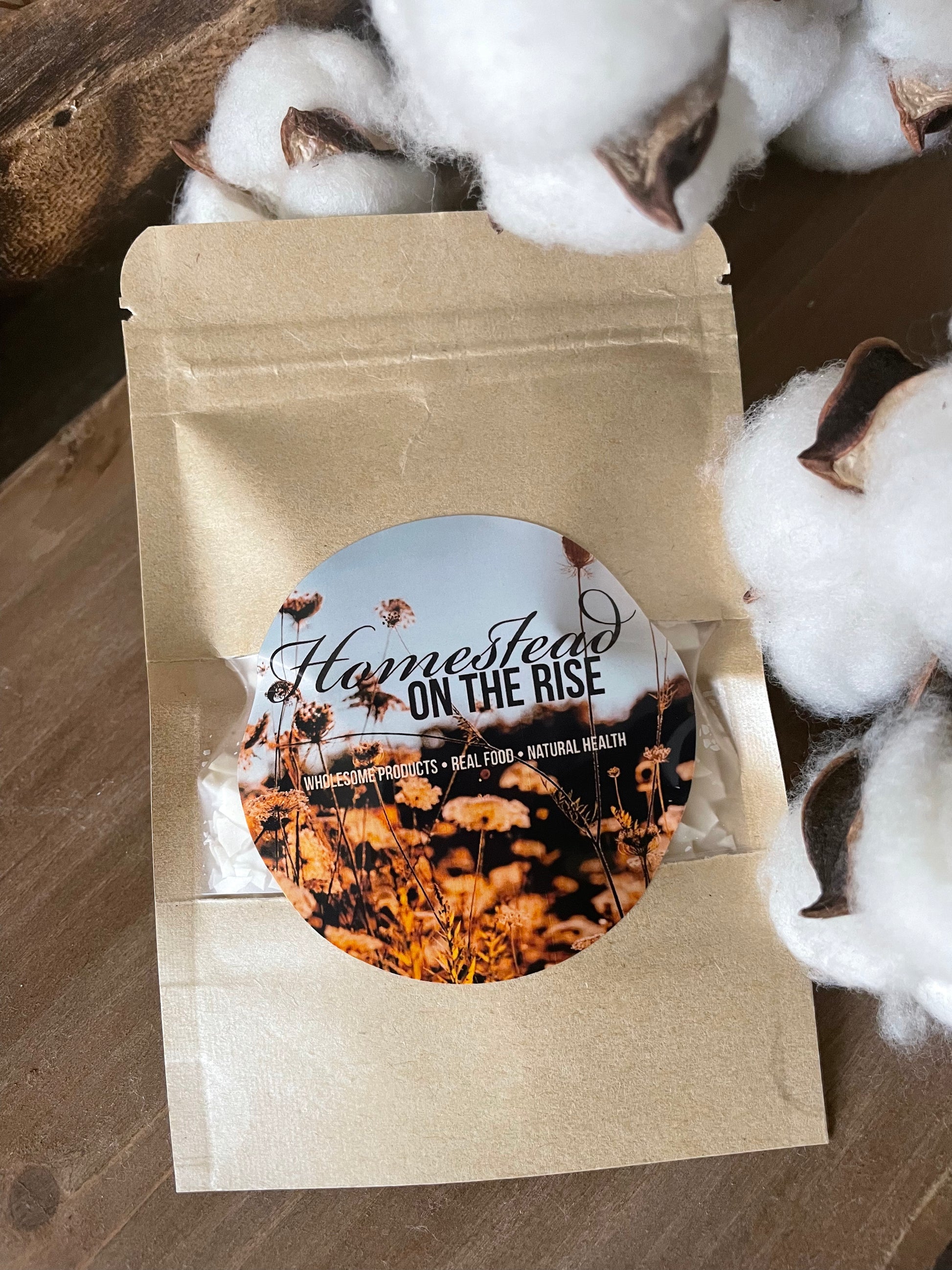 Our Dehydrated sourdough starter is the perfect staple for all of your baking needs. Not only will you receive three dry starters in one, you will also receive very detailed instructions- along with Ally’s original (and favorite) bread recipe. Ally’s starter was made from scratch in May of 2022. We hope you enjoy!